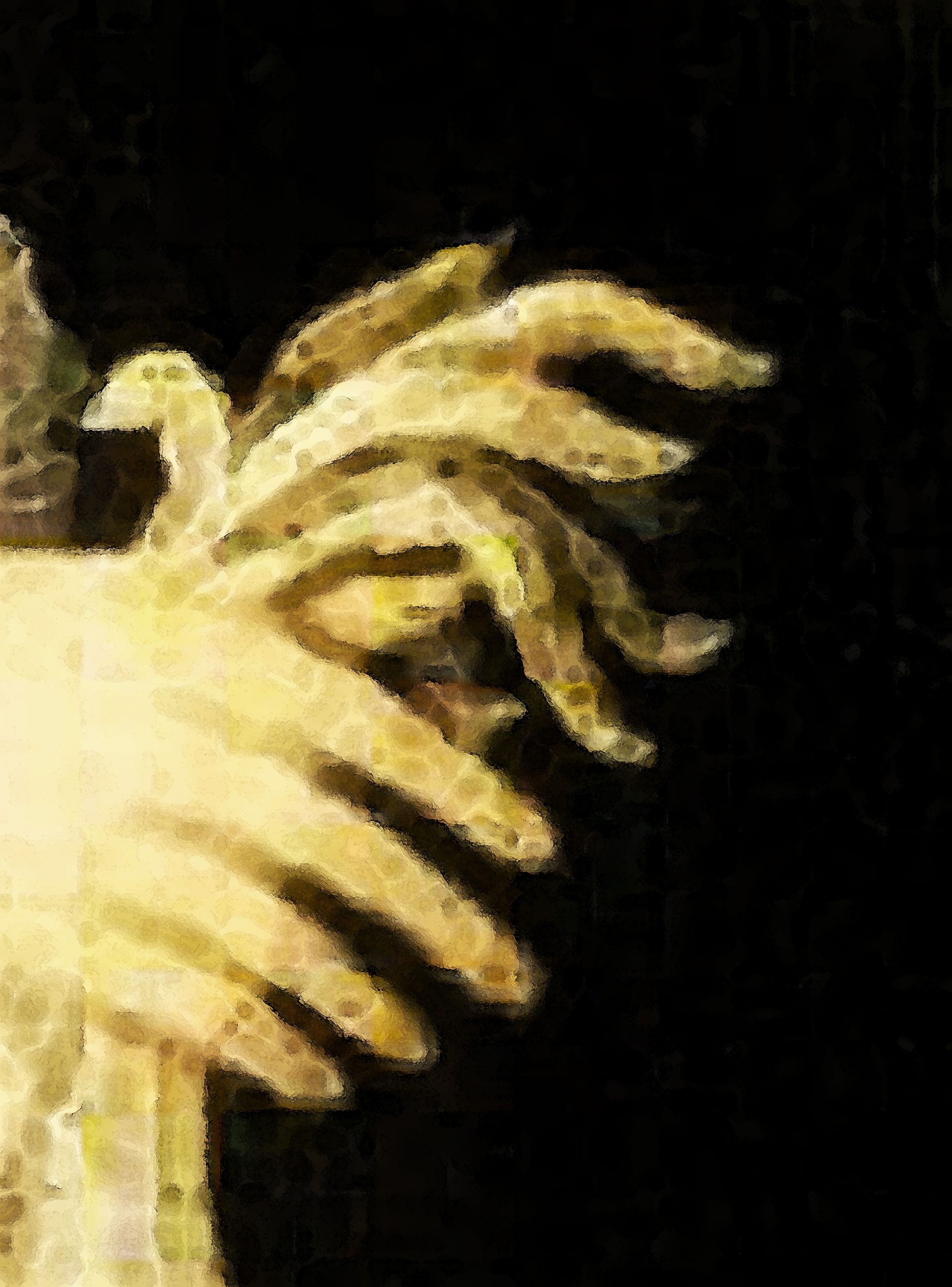 Why is it that composite machine art seems to struggle with fingers? We had taken up this question four blocks south of here. Helmut maintains that fingers are an insignificant detail in the grand picture. We don’t talk about famous fingers. We don’t marry for them or cite them in divorce papers. We don’t remember people by their fingers, unless we know them in the dark. Maybe all they’re good for is requesting automatic art.